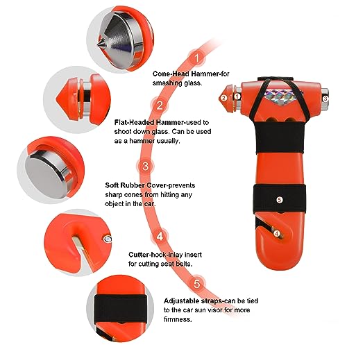 THINKWORK Car Safety Hammer, 3-in-1 Emergency Escape Tool with One Second Window Breaker and Seat Belt Cutter, Safety Emergency Car Escape Tool for Car, Office, Home, Orange