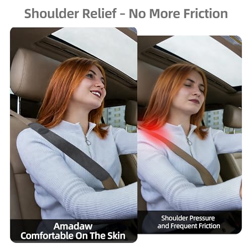[Ultimate Neck Protection, No Rubbing] The AMADAW 2025 upgraded seat belt shoulder pads protect your neck from friction. The soft suede pad isolates your neck from the seat belt, so your skin will not get allergic, red or cause any discomfort. Ensure you can enjoy a comfortable, smooth, irritation-free drive/ car experience with your family every day.