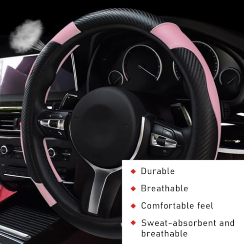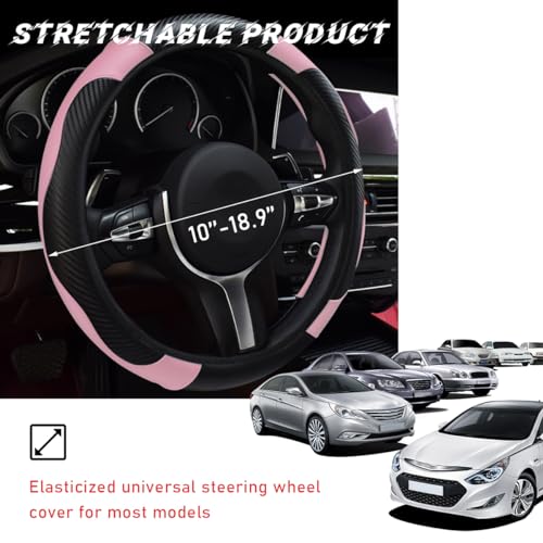 Car Steering Wheel Cover, 15 Inch Leather Breathable Auto Steering Wheel Protector, Comfortable Non-Slip Vehicle Steering Wheel Covers, Universal Interior Car Accessories (Black+Pink)