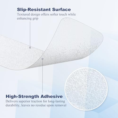 Upgraded PEVA Material: Anti slip shower mat stickers use skin-friendly surface with subtle texture for strong anti-slip traction. Suitable for all ages, perfect for bathrooms, stairs, pools, and other slippery surfaces, guards family day/night