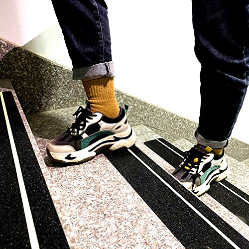 COSIMIXO 4″ x 33FT Anti Slip Tape with Glow in The Dark Stripe,Premium Grip Tape Non Slip Stair Treads Tape,Non Skid Tape, High Traction Adhesive for Stairs Step Black/Green