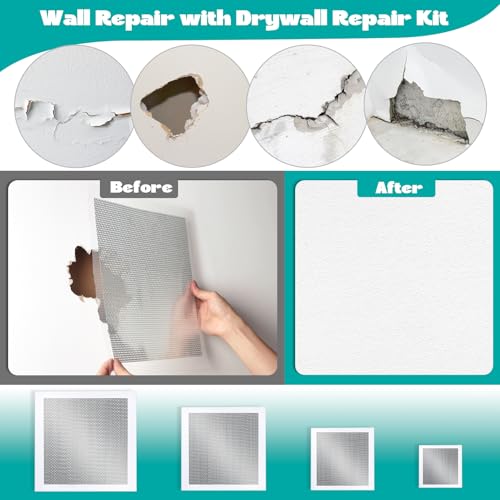 16Pcs Drywall Repair Kit, 2/4/6/8in Self-Adhesive Drywall Patch Kit with Sandpapers & Scrapers, Wall Repair Patches for Small Big Holes & Cracks, Quick Fix for Ceiling Bathroom Wall Damage