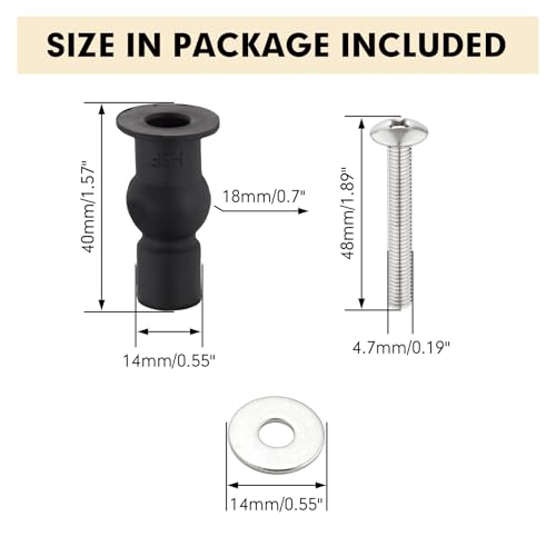 Comprehensive Specifications for Your Convenience:The kit includes two rubber sleeves (40mm / 1.57in), two metal screws (48mm / 1.89in), and stainless steel washers (14mm / 0.55in) for reliable and precise installation. This thoughtfully designed toilet seat tightening kit is engineered for top-mounting toilet seats, ensuring compatibility with various bathroom setups