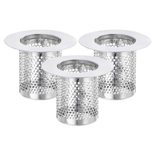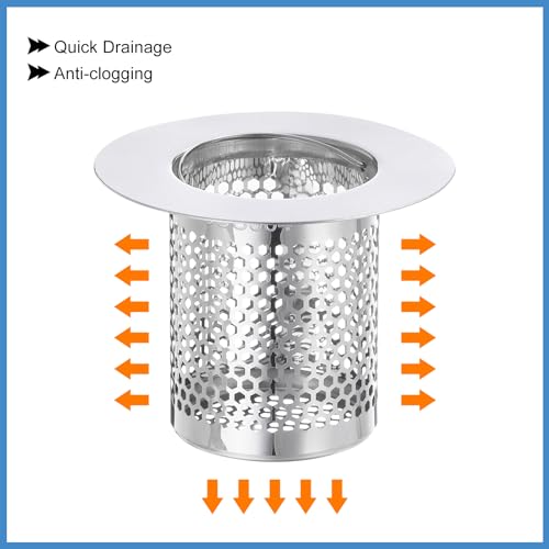 uxcell 2 Pack Shower Drain Strainer, 2″ x 2.5″ Stainless Steel Floor Drain Strainer Deep Sink Hair Catcher for Kitchen Bathroom Balcony Floor Drain, Fit Hole Size from 1.57″ to 2.56″