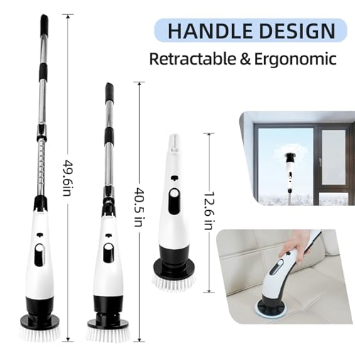 【Adjustable & Retractable Handle】The retractable handle extends from 32CM to 126CM, suiting all – height users (adults/children) and hard – to – reach areas. Whether you need a compact spin brush for small spaces or an extended shower cleaning brush with long handle for high windows, it adjusts easily. Lightweight (1.45KG net) and ergonomic, reducing fatigue during prolonged use.