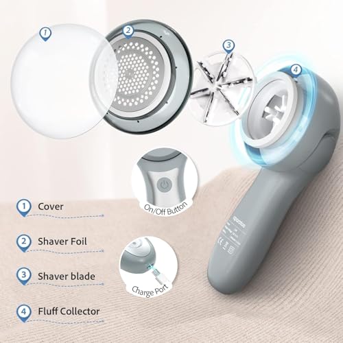 Powerful Fabric Shaver for Clothing : Our electric fabric shaver comes with 2 speed settings, up to 9000RPM. Firstly, the mesh cover of this fabric shaver for furniture has 3 sizes of holes, which can quickly clean up different sizes lint, pilling, fuzz, pill . Secondly, compared to the traditional 3-leaf blades, we equip with 3pcs rust-proof 6-leaf blades, which can greatly improve the working efficiency of the rechargeable fabric shaver and meet the needs of all fabric surfaces.