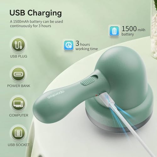Long-Lasting Battery: 1500mAh fabric shaver powers through over 3 hours of continuous use, outlasting others 500mAh that may require mid-task recharging at 0.5 hours. Equipped with Type-C cable, also Charge from Power Banks, Laptops, or Cars. Work Wirelessly for a Comfortable Lint Removal Experience