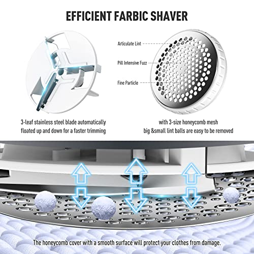 Ruidla Fabric Shaver Defuzzer, Electric Lint Remover, Rechargeable Sweater Shaver with Stainless Steel 3-Leaf Blades, Dual Protection, Removable Bin, Easy Remove Fuzz, Lint, Pills, Bobbles
