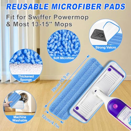 Floor Mop with Washable Pads: 4 reusable mop pads are durable and super absorbent to remove dirt dust and grime, attached with velcro, also compatible with Swiffer Powermop for replacement