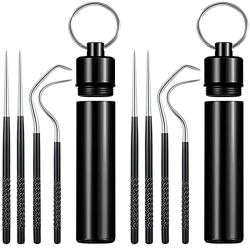 Portable Titanium Toothpicks Pocket Set Reusable Metal Stainless Steel Toothpicks with Holder for Outdoor Picnic and Camping (Black,2 Sets)