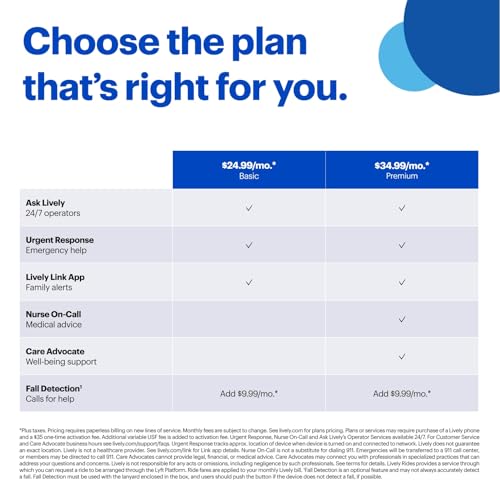 Fall Detection: In the event of a fall, the Lively Mobile2 can automatically connect to our caring team, who can dial in a loved one for help or dispatch emergency services if needed, even if you are unable to press the button; add Fall Detection to your Lively Plan for 9.99/month