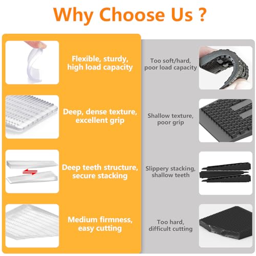 INTERLOCKING STACKABLE SYSTEM | Precision non-slip ridges (6.45º angle) grip securely. Stack shims modularly to hold 22,000 lbs – adjust height for doors, cabinets, or outdoor equipment like patio umbrellas.