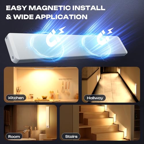 2 Pack Under Cabinet Lighting Wireless 10inch LED Motion Sensor Magnetic Light 2200maAh Rechargeable Indoor Closet Lights for Kitchen, Stairs Warm White