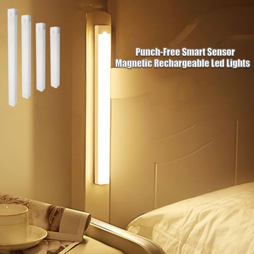 Generic 4/8Pack Punch-Free Smart Sensor Magnetic Rechargeable Led Lights, Motion Sensor Light Indoor (4PCS Warm White, 10cm/3.9in)