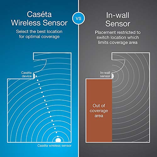 VERSATILE AND POWERFUL: one sensor can turn off any number of Caseta switches, dimmers, fan controls, and Serena smart shades within 60 ft.