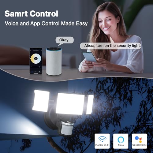 Smart Voice & App Control: Connect to 2.4GHz Wi-Fi and activate the motion sensor outdoor light (non-solar) using Alexa or Google Assistant. Explore additional features through the app and start your smart living experience! Features include adjustable color temperature, motion sensor distance, motion off delay, stepless dimming, weak light brightness, motion sensor linkage, group control, and more