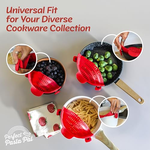PERFECT PASTA PAL Clip-on Strainer for Pots – Silicone Pasta – Heat Resistant, Space Saving Colander for Kitchen – Dishwasher Safe Pot Strainer – Cooking Essentials and Home Must Haves