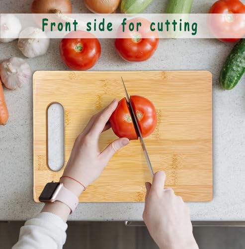 Bring both function and charm to your kitchen with this bamboo cutting board. Designed with a smooth surface for light prep and a decorative flip side for serving, it suits everyday use as well as special occasions. Its compact size makes it practical for cooking while also easy to display. Thoughtful in design, it can be shared as a gift for friends, family, or anyone who enjoys a cozy home touch.