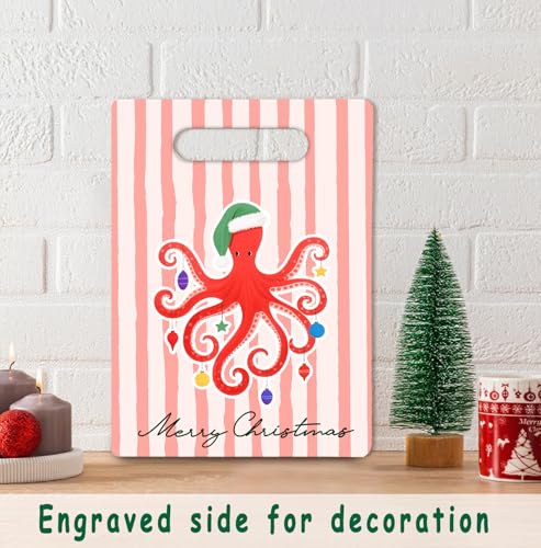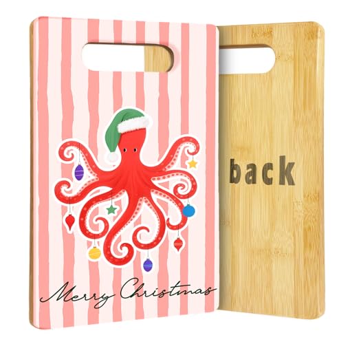 WHCHJ Christmas Octopus Cutting Board For Kitchen, Coastal Christmas Charcuterie Board, Gifts for Octopus Lovers, Beach Xmas Decorative Bamboo Chopping Boards for Home Kitchen