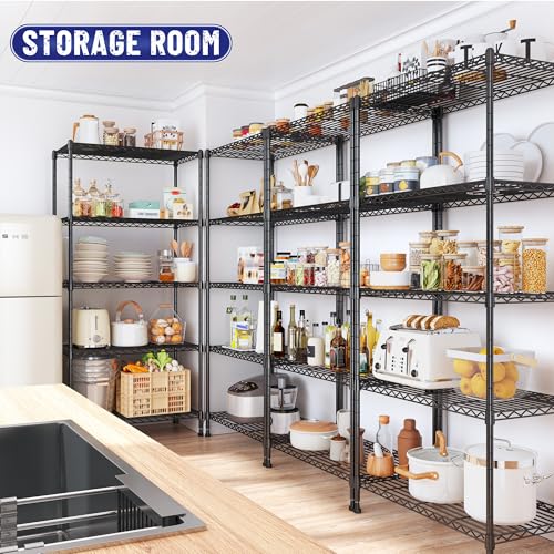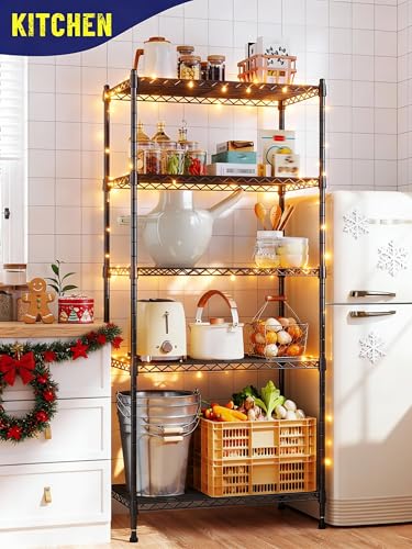 5-Tier Shelf, Shelves Capacity 1010LBS,Storage Shelves Adjustable Wire Shelving,Metal Shelving Unit Storage Rack for Kitchen Pantry Closet Laundry School Commercial 59.4″ Hx21.5 W x13.6 D