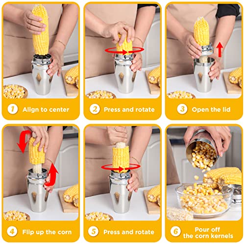 YYP Corn Cutter Peeler, Corn Cob Stripper with Cup [No Splatters or Mess], 304 Stainless Steel Corn on the Cob Remover Kitchen Tool, Corn Kernel Shucker Separator Slicer with Serrated Sharp Blade