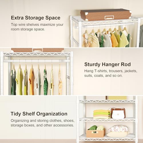 Ulif E1 Heavy Duty Closet Garment Rack, 6 Tiers Adjustable Metal Freestanding Expandable Clothing Storage with 4 Hanger Rods, Easy to Assemble Wardrobe, 71.4″ H x (70″ – 88.2″) L x 14″ D, White