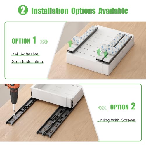【No-Hardware Pull-Out Drawers Installation】Secured by 3M adhesive sliders for cabinets—no drilling/tools! Peel, stick, press. Under cabinet organizer is ready in seconds