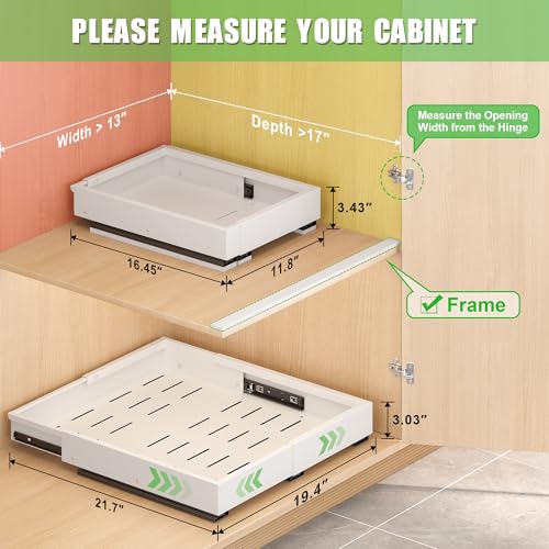 【Deep Cabinet Organizer Pull-Out】Stop digging in dark depths! Our stick-on pull out drawers slide out instantly, accessing back items effortlessly. Adjustable depth fits 17-22-inch deep cabinets. Ideal kitchen cabinet organizers and storage