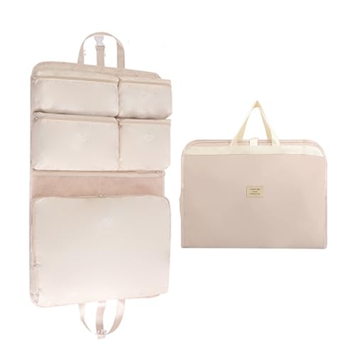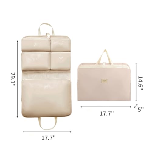 7-in-1 Travel Storage Bag, Foldable Hanging Packing Cube with Compartments for Clothes, Beige