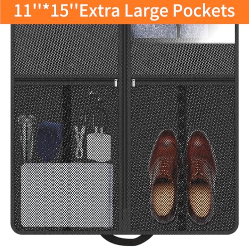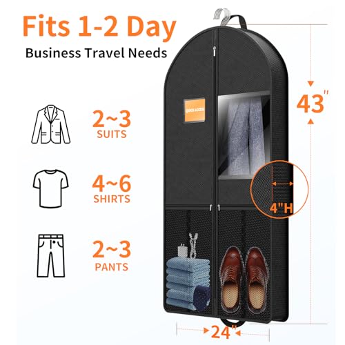 Suit Garment Clothes Travel Bag: 43 inch Lightweight Foldable Black Short Fabric Breathable – Hanging Storage Cover Pockets Zipper for Men – Wardrobe Carry Coat Jacket Uniform Tuxedo Shirt
