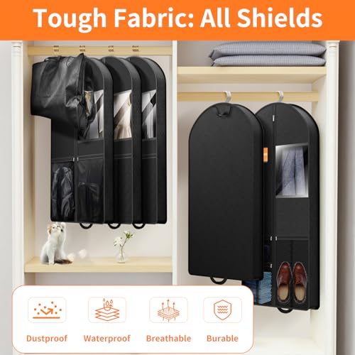It can be used at home in the closet for daily storage, during travels in a suitcase or carry-on luggage, and in hotel rooms where the hanging feature keeps it wrinkle-free. Also suitable for dry cleaning shops to protect suits during transit.