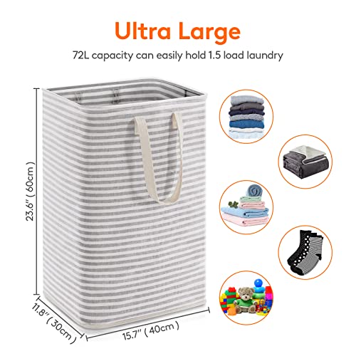 Ultra Large: The laundry hamper measures 15.7 x 11.8 x 26.4 inches (L x W x H) with a capacity of 80L and 2 of set which easily contains 1.5×2 loads of laundry. It can hold a lot of items such as dirty clothes, wet towels, sheets, etc.