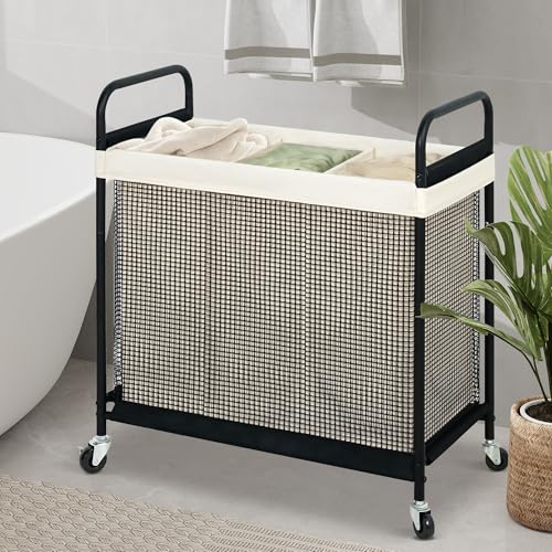 STO STO Laundry Hamper 3 Section, 120L Rolling Laundry Sorter Cart with Removable and Washable Liner Bag, Rolling Clothes Hamper with Metal Handle for Laundry Room and Bedroom