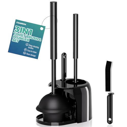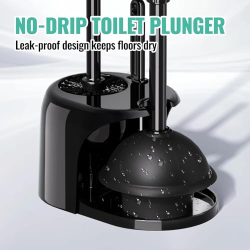 3 in 1 Toilet Brush and Plunger Set with Crevice Cleaning Brush, Toilet Plunger and Brush Set with Extra Long Handle, Plungers for Bathroom Accessories, Toilet Plunger with Holder, Black